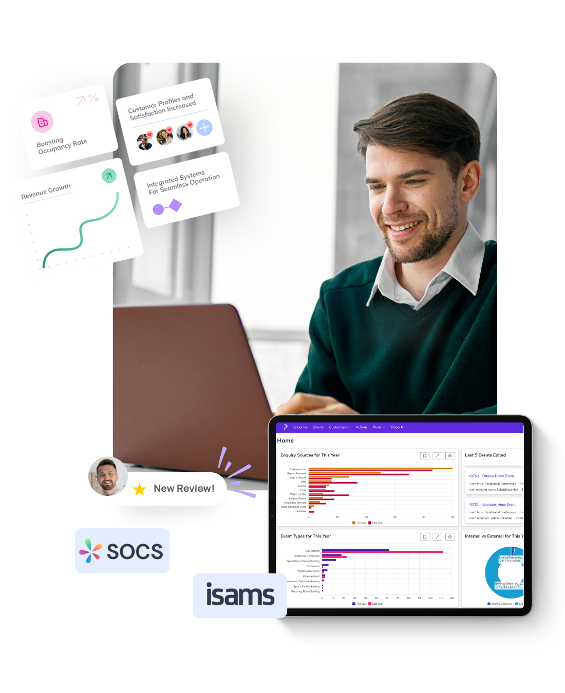 Stop juggling spreadsheets and emails. Manage weddings, boarding house rentals, summer schools, sports hire, and conferences from one cloud-based system.